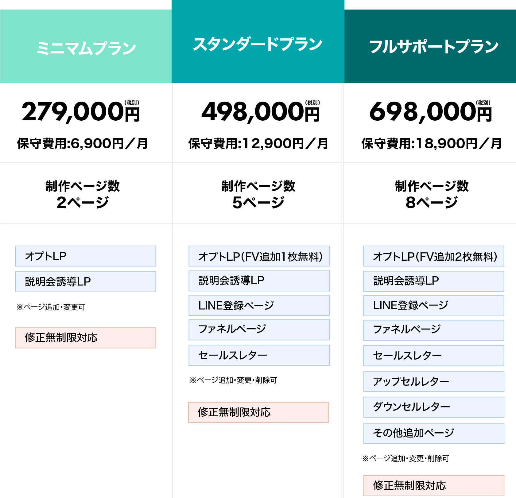 - いいえ、すべてのプランで修正は無制限対応です。